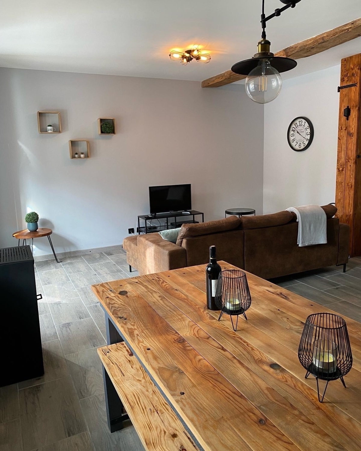 De gîte heeft een ruime living met open keuken. De keuken is volledig ingericht en voorzien van een vaatwasser, koelkast met vriesvak, gasplaat, oven en magnetron.De gîte heeft satelliet tv (incl. dvd speler) en wifi.