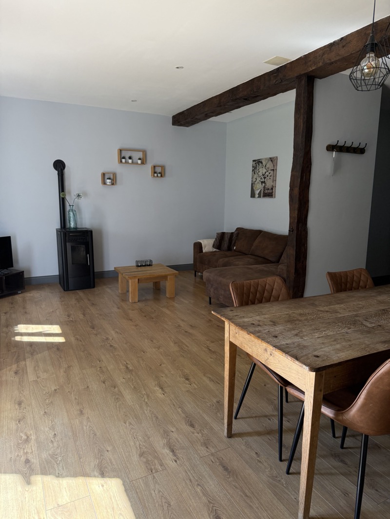 De gîte heeft een ruime living met open keuken. De keuken is volledig ingericht en voorzien van een vaatwasser, koelkast met vriesvak, gasplaat, oven en magnetron.De gîte heeft satelliet tv (incl. dvd speler) en wifi.