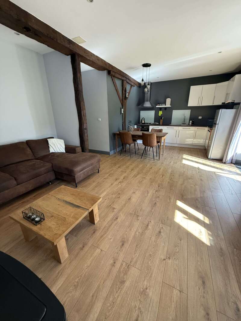 De Gite heeft een ruime living met open keuken. De keuken is volledig ingericht en voorzien van een vaatwasser, koelkast met vriesvak, gasplaat,oven en magnetron. In de keuken staat een houten tafel met comfortabele stoelen. In het woongedeelte staat een heerlijke hoekbank. Er is een smart tv aanwezig en wifi (glasvezel)